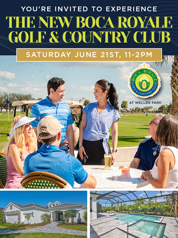 Experience the all-new Boca Royale Golf & Country Club at Wellen Park! If you missed our Virtual Live Event today, don’t worry, there’s more fun happening tomorrow! Come see this stunning new community in-person, including 6 designer-decorated models — you’ll get a firsthand look at the elevated Florida lifestyle that awaits.